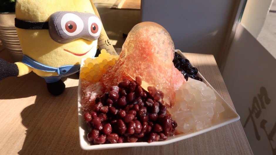 明顯會被客訴的事情我絕對不幹!但是自己吃東西我完全不手軟。總之,我之前閒了點,就自己弄自己吃的料滿滿刨冰,並順手拍了幾張照片給老闆。