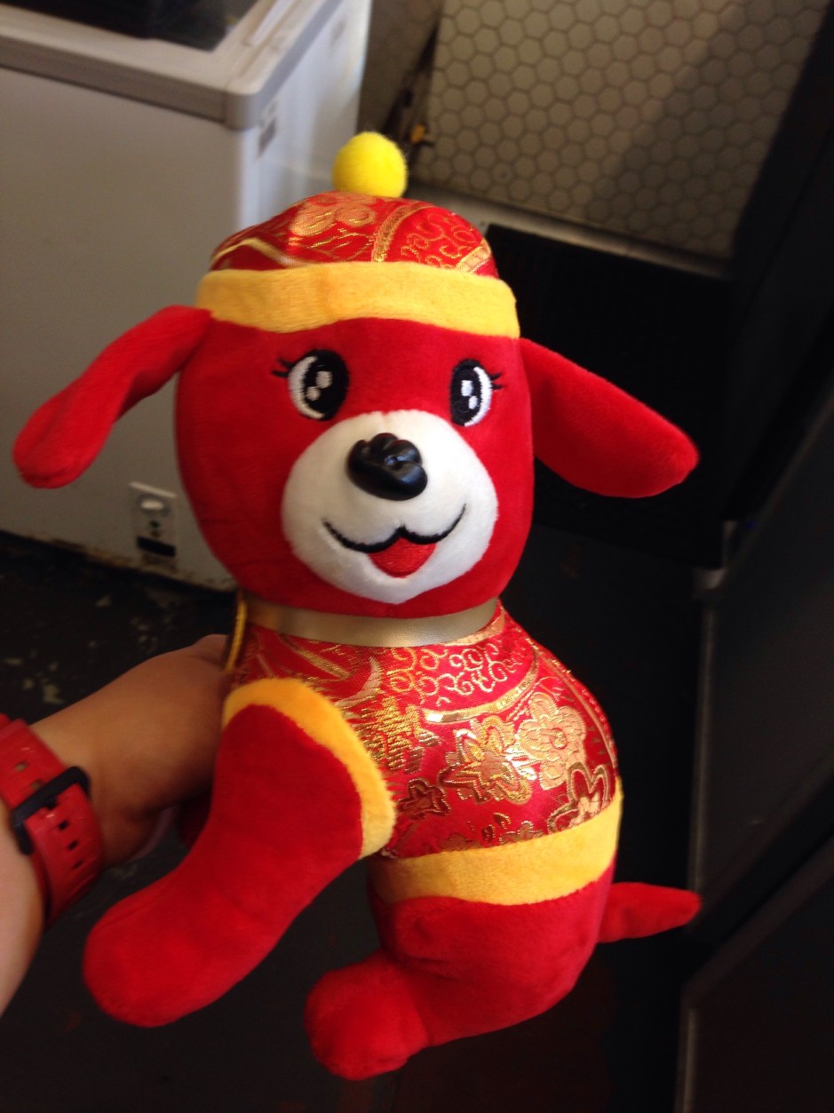 今天店長弄一個產品給我,還說老闆叫我拍照給他。老闆還指點我要把他的小黃人跟新買的狗放一起拍照。