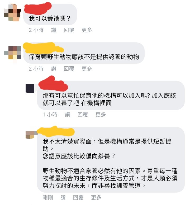 為了避免「野生動物」被滅絕的方式,就是要求政府開放領養?帶回家自己照顧?