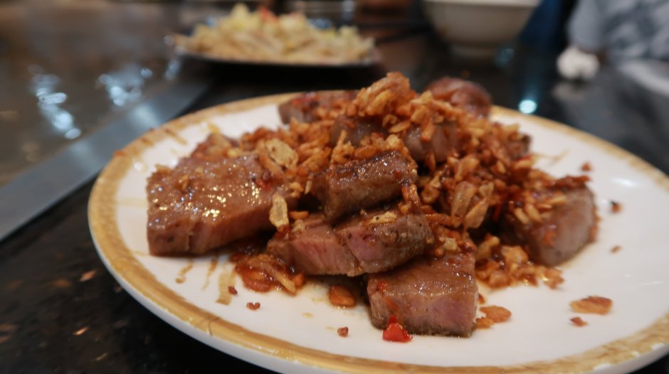 地板沒有很乾淨,就很一般生意好的平價鐵板燒該有的黏膩感。ʘ ͜ʖ ʘ ( 翻桌率很高的證明啊~ 肯定是在地優良店家!)