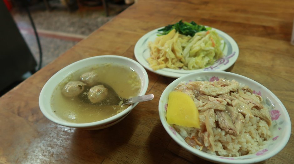 接著上了丸仔湯跟火雞肉飯來,老闆路過,瞄了一眼整桌。認真地告訴我:「你這樣60!」