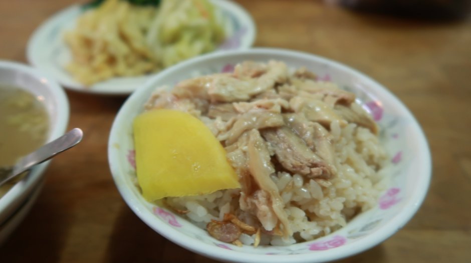 - 雞肉單吃沒有什麼味道。( 剛好是我個人不喜的白肉絲。*註 )這時候只要趕快把肉絲拌進吸滿醬汁的白飯裡面即可!完美的白飯與醬汁可以融合一切,把全體都變得更和諧。吃了一下覺得味道有點膩口的時候,咬一口醃漬的黃蘿蔔片,可以瞬間改變雞肉飯的味道跟口感喔喔喔!☜╮(´ิ∀´ิ☜╮)