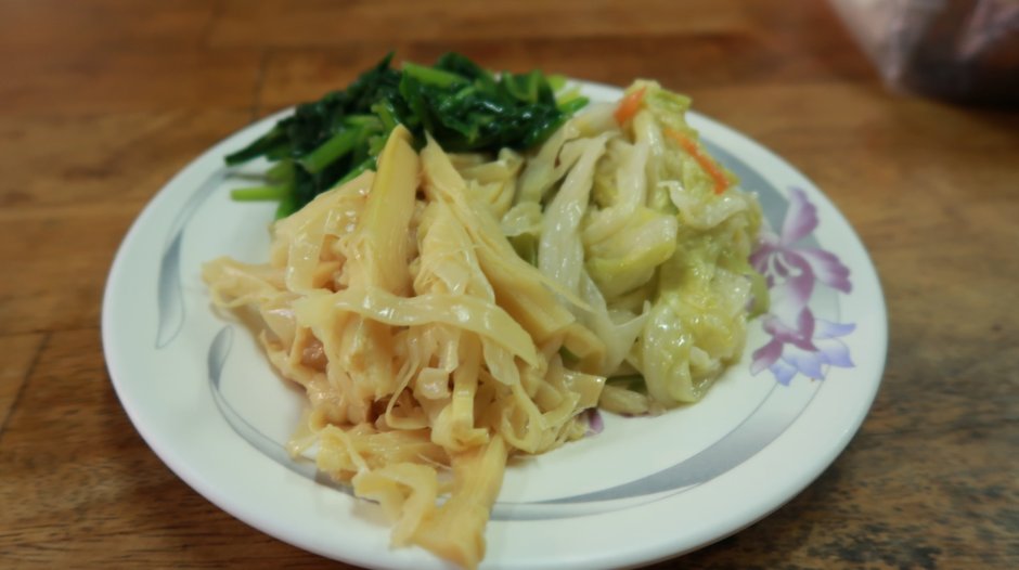 - 青菜我夾的,份量超實在。經典的筍絲、熱呼呼的軟高麗菜、剛做好並調味得當的波菜。配菜項目滿分!