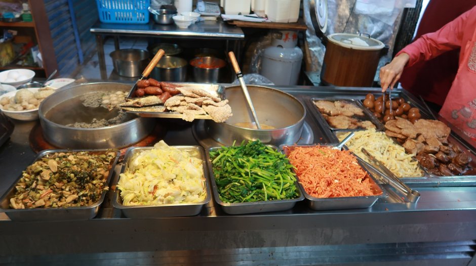 我表明要內用後,老闆娘直接拿一個盤子給我自己夾菜。