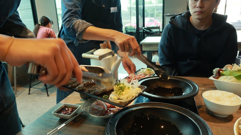 石頭火鍋吃過的經驗不太多,印象中就是台北的小紅莓跟連鎖店築間。特色都是可以選擇是否先以麻油炒料至肉半熟,隨後再以火鍋享用。