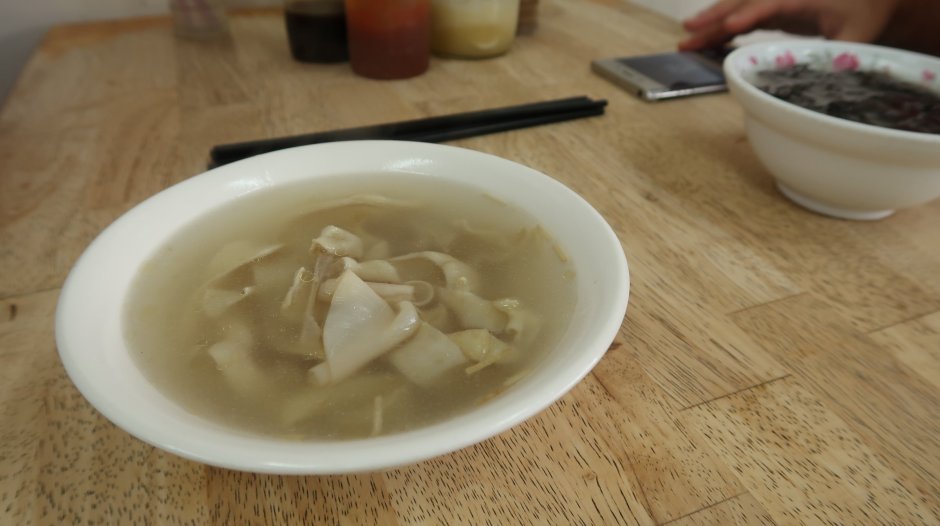 湯:除了吃自己的紫菜蛋花湯之外,也吃了一口別人的腸子湯。整體來說有種奇妙的甜味~~~讓我早晨沒醒的腦子更加混亂了!(꒪⌓꒪) 而且腸子湯如果是全糖,紫菜湯還只有8分糖而已……Why??? 為什麼湯有不同的甜度?