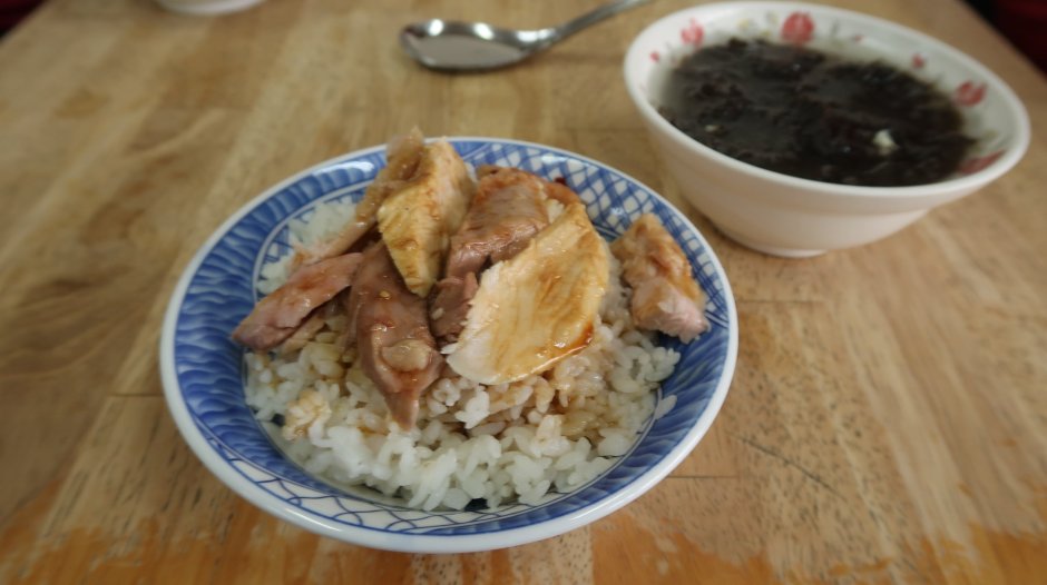 火雞肉片飯:連我這個半個外地人都知道這家雞肉片飯的盛名!把雞肉片先做出名的應該是這家吧!( 我不知道實情,歡迎留言指教謝謝!) 肉片不只部位都不同,切法也不同!(*´ω`*) 有極小部分帶皮的部位,還有我喜歡的深色肉!上面特意淋上醬汁,掩蓋白切肉可能平淡無味的事實。☜╮(´ิ∀´ิ☜╮) 米飯顆粒分明,醬汁也很搭配!而一般火雞肉飯旁邊搭配的醃漬黃蘿蔔,他們以切成小條狀的辣蘿蔔乾呈現不同口感。獨具風格!老實說早上我整個人沒醒到連翻白眼都沒力氣,吃了1/3碗就飽了。但是名店就是名店!他以穩紮穩打的口感讓我緩慢的一口一口塞光一碗飯!( 對我知道我本來就很能吃不用對我強調!)
