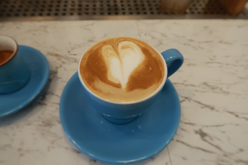 過了好一陣子,單品拿鐵由另一位店員端給我。上桌時告訴我:「咖啡有點太滿了。」放上桌之後又告訴我:「要水再跟我們說!」