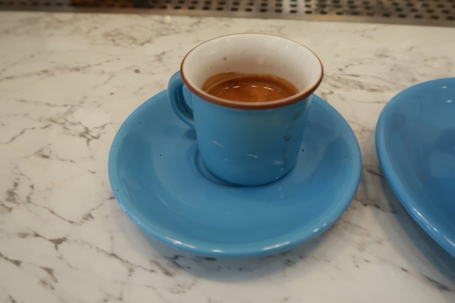 對於店員的慌張,把用餐區當自己辦公區的主管階級,不耐地起來進吧檯,隨手做了一杯義式濃縮給我。出餐之前把咖啡盤隨便用乾布擦拭 ( 在我面前 ),然後把義式濃縮放到我面前的桌上:「另一個稍等。」然後又回去辦公。