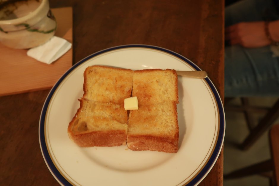 奶油吐司:真心喜歡他們烤吐司!喜歡到我又跑去叫一塊!( 然後等很久……久到我覺得要後悔的時候,他就來了!吃下口的那秒又覺得不後悔了!) 之所以沒有點肉桂糖的是因為我很怕肉桂,點之前好好地請教店員是不是能不要放肉桂,他告訴我那個是香料糖,已經混在裡面了。