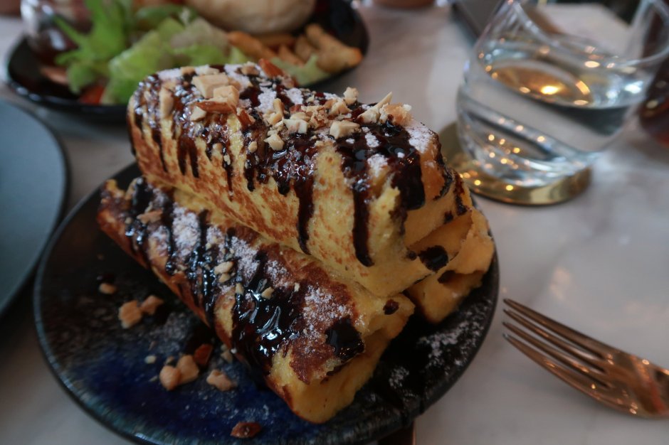 黑惡魔 / 巧克力香蕉捲:這個是熱的甜點!在我們自己的餐都還沒吃到一半就上了。你怎麼會在客人還沒吃完正餐就上甜點?(눈_눈)而且還是現做的熱甜點?!甜點後上不是基本常識嗎?我沒有要你壓單還是非得等到我們全部吃完再上,但是我們才剛開始吃那盤早午餐啊啊啊啊啊啊啊啊啊啊啊~~~在吃掉一大盤早午餐之後,再吃這個真的很有飽足感!