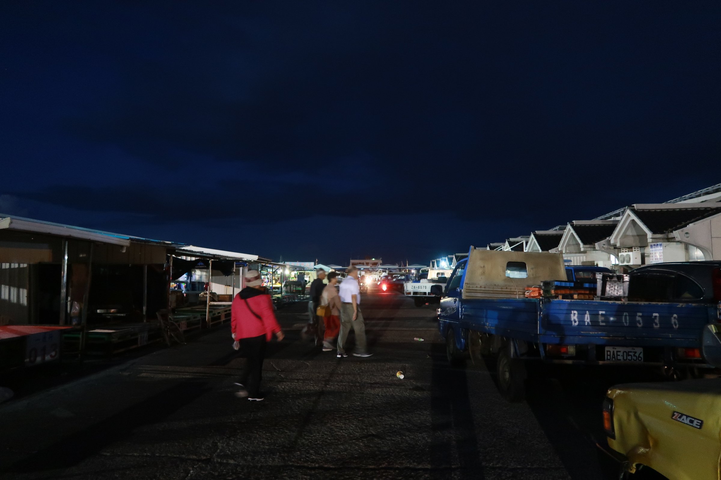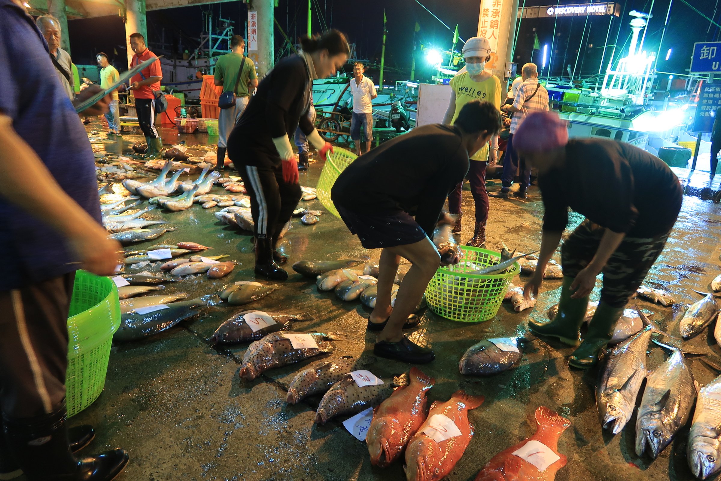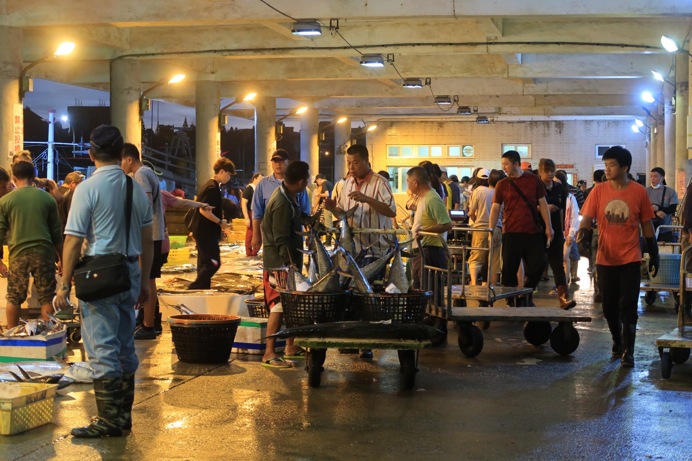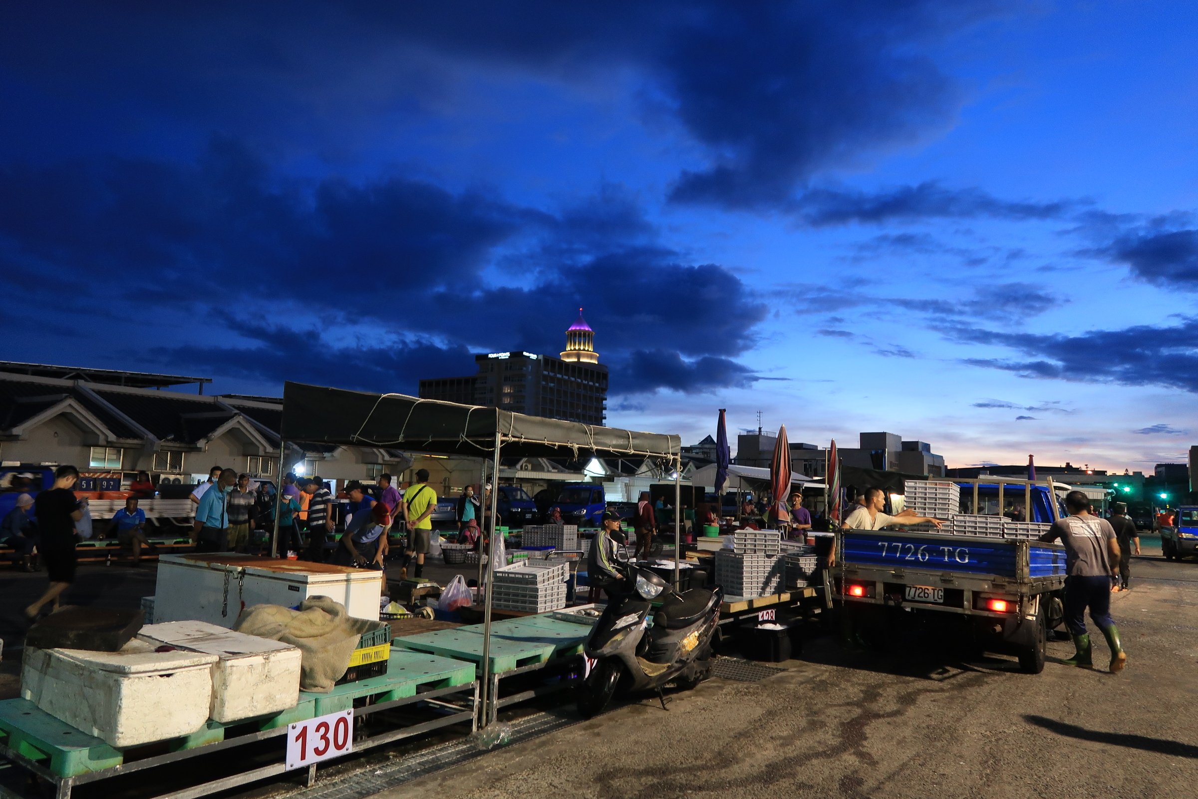 魚市場中央還是一片漆黑,跟著人走,才發現右手邊的港邊,才是漁船進貨販賣,大盤商的天下!