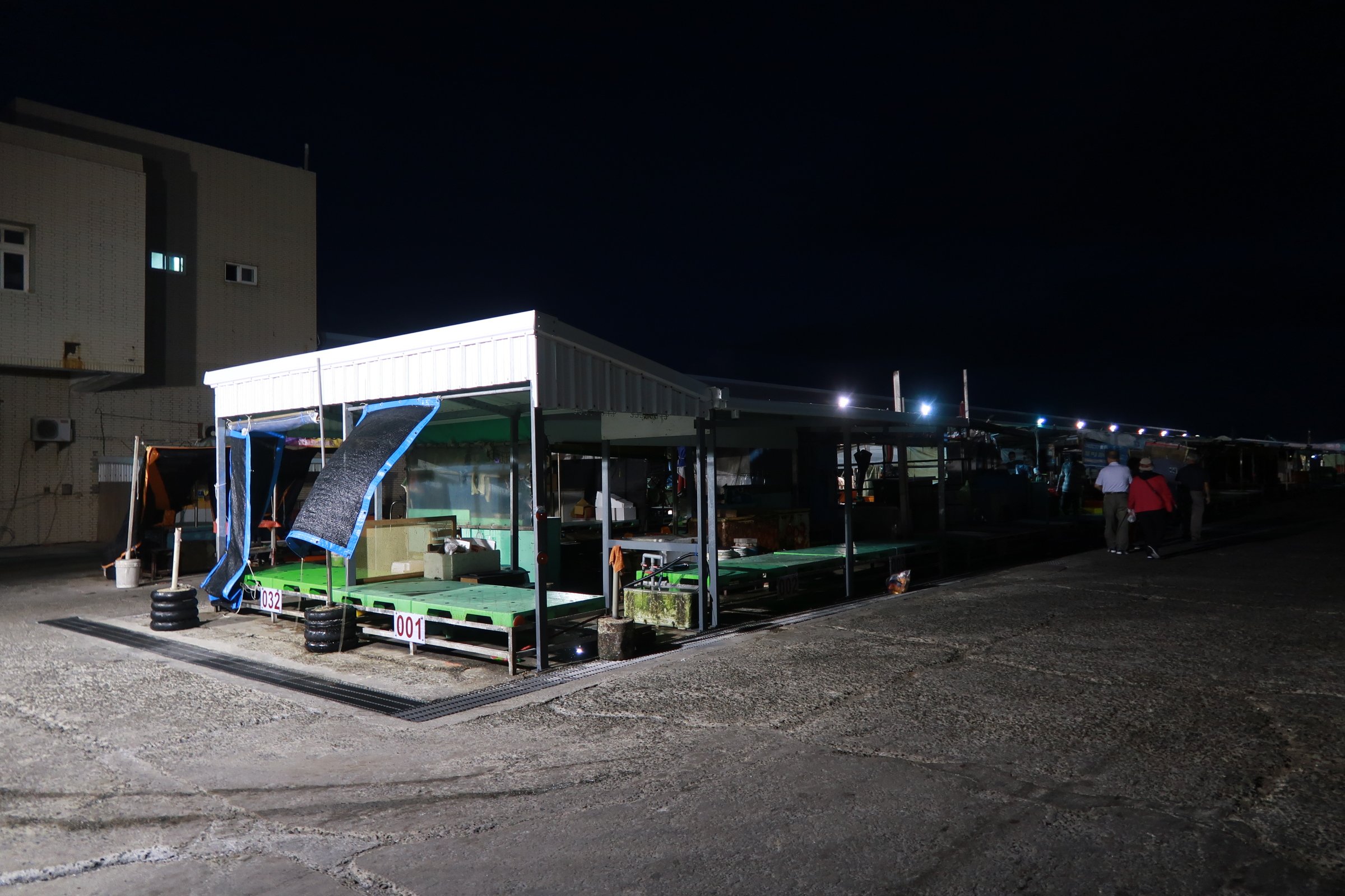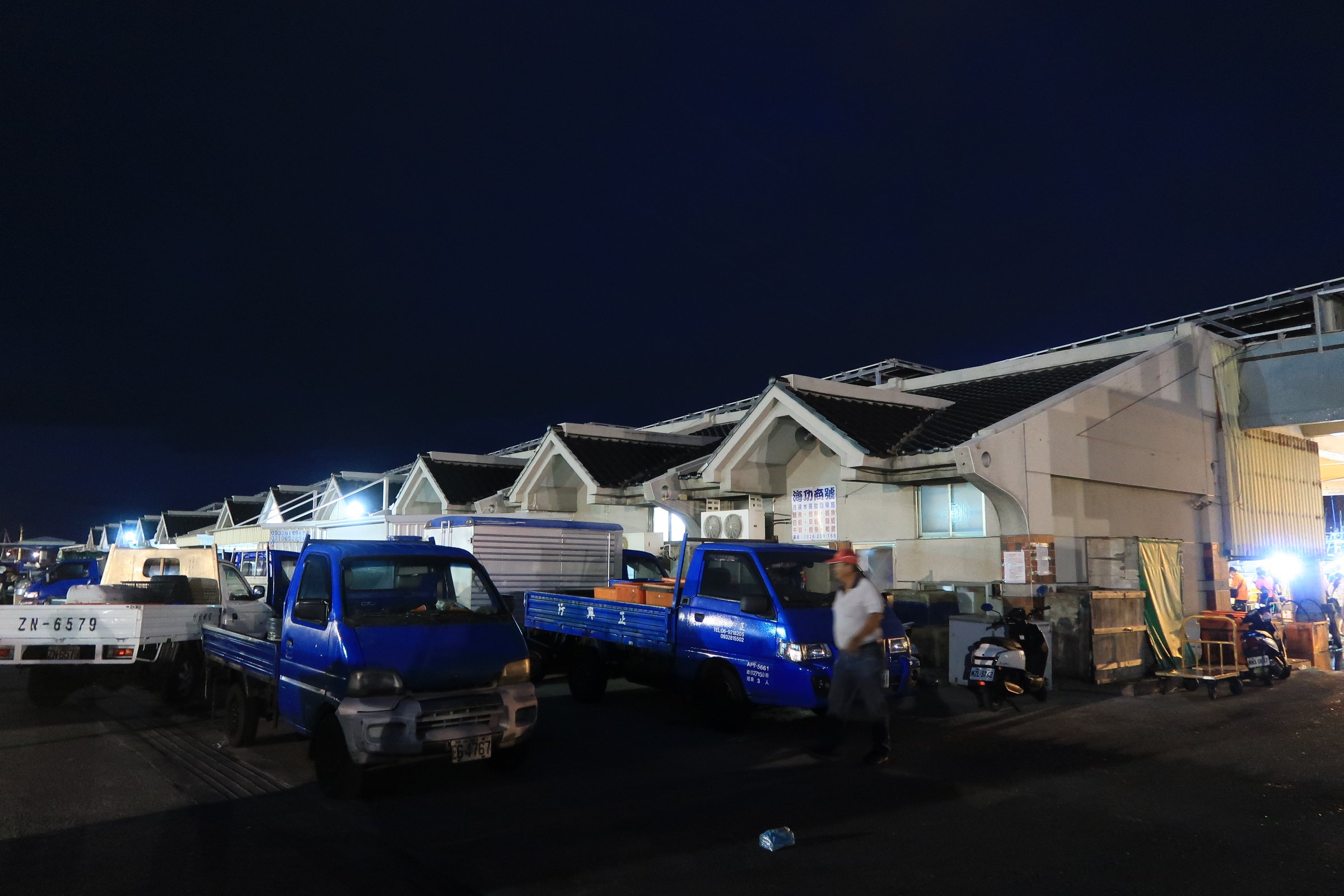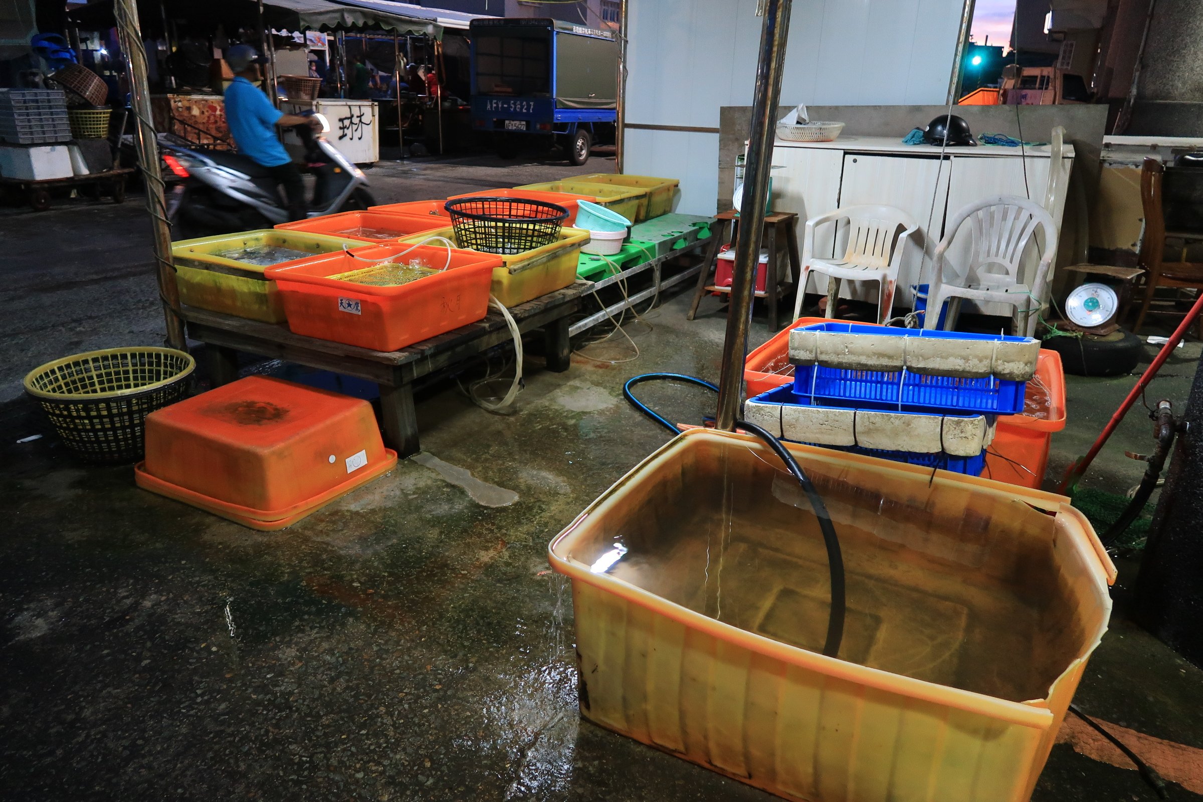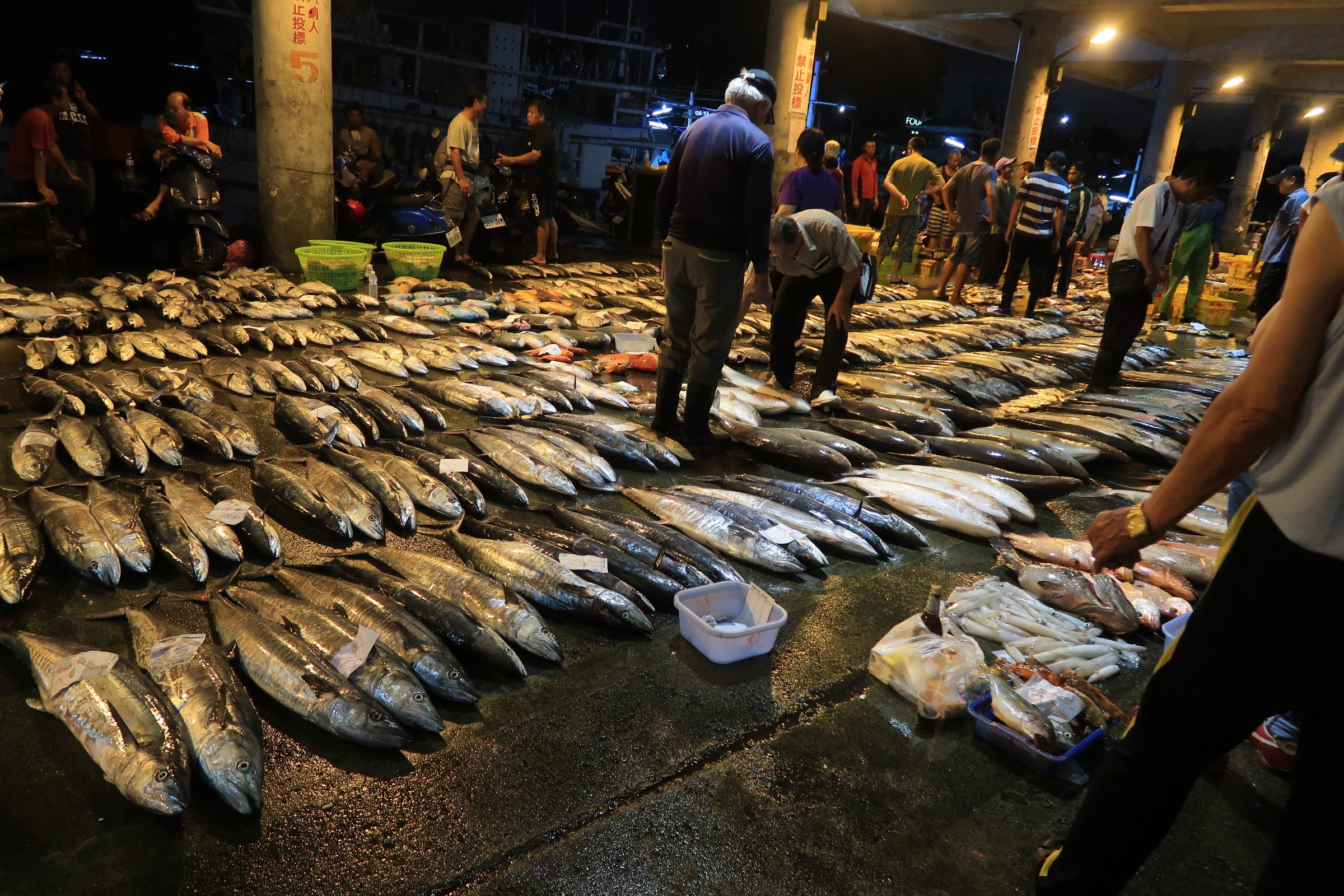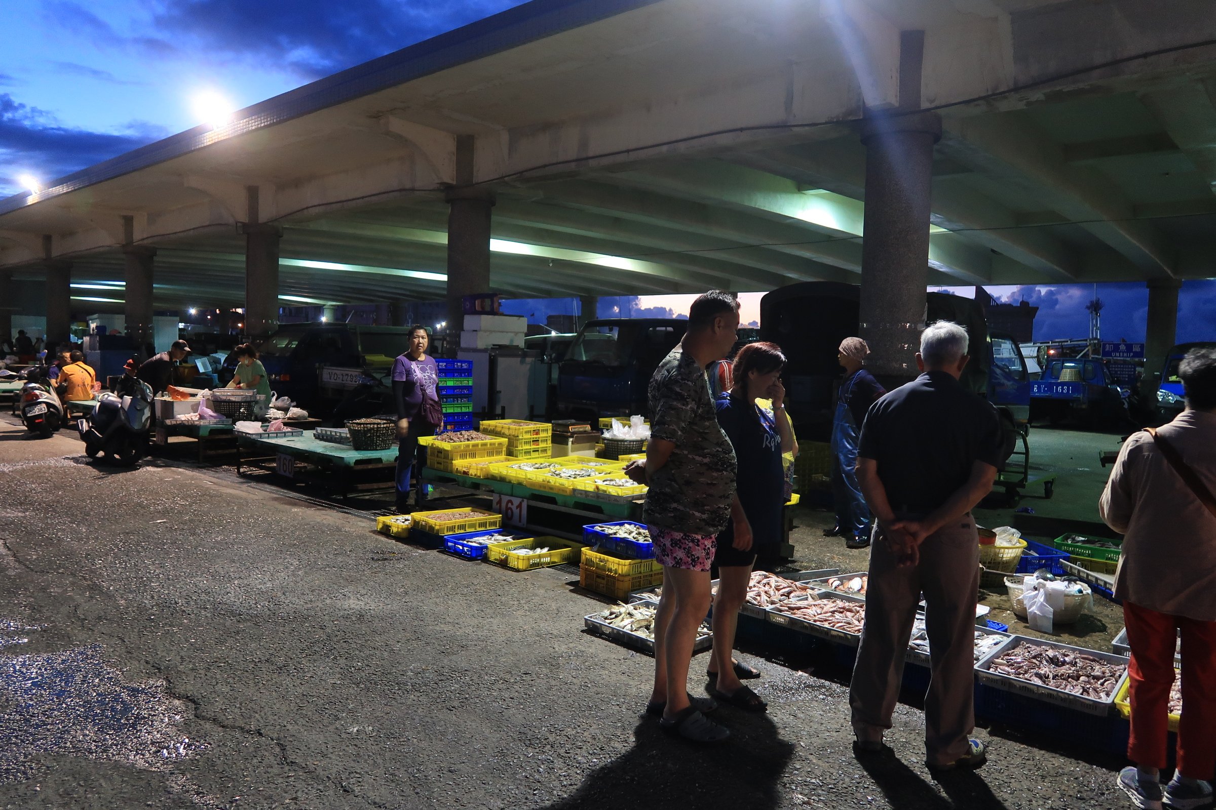 魚市場中央還是一片漆黑,跟著人走,才發現右手邊的港邊,才是漁船進貨販賣,大盤商的天下!