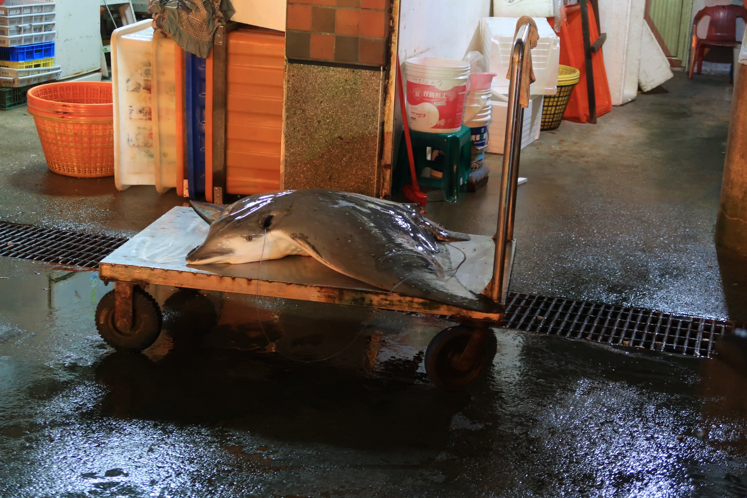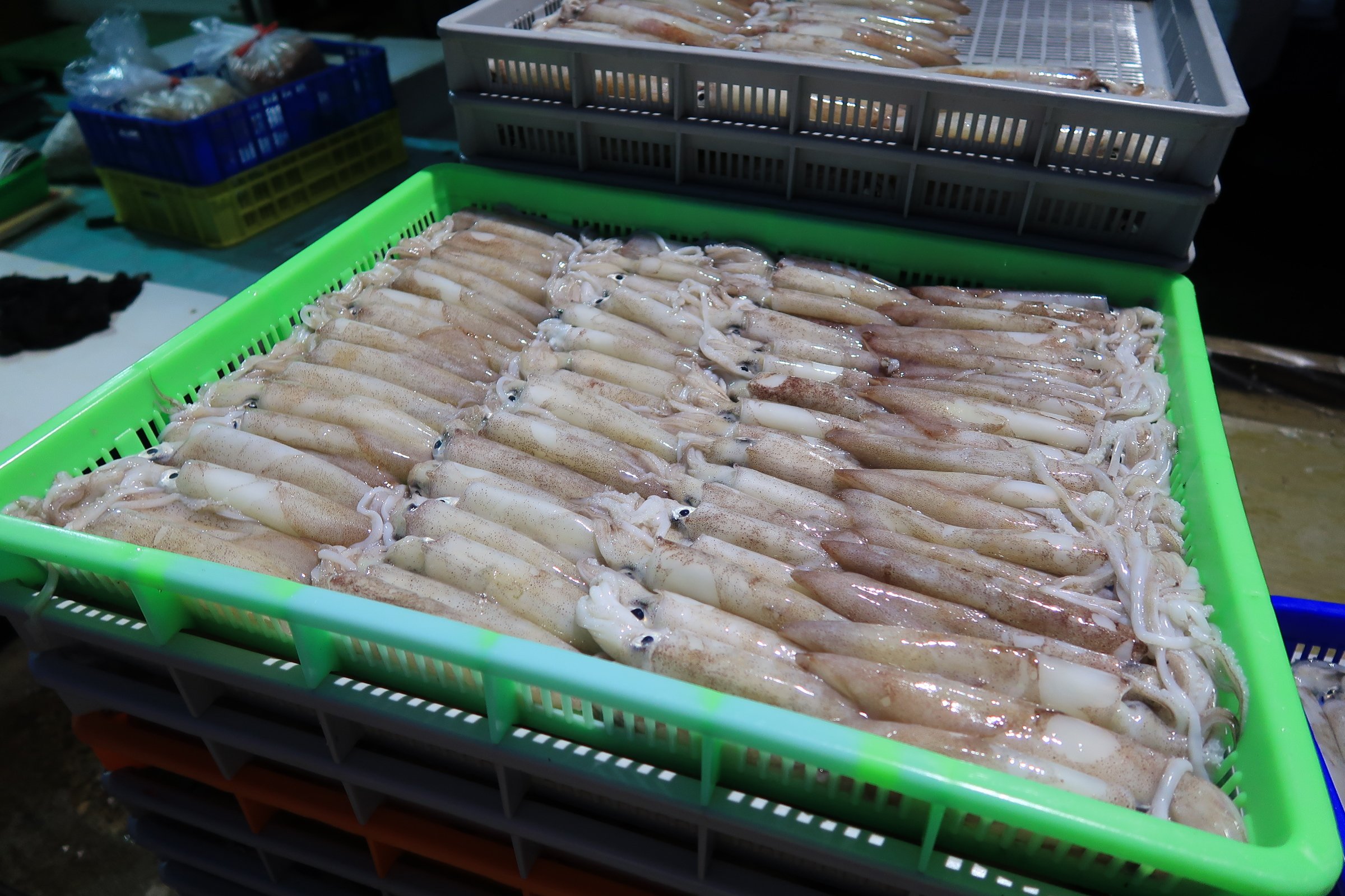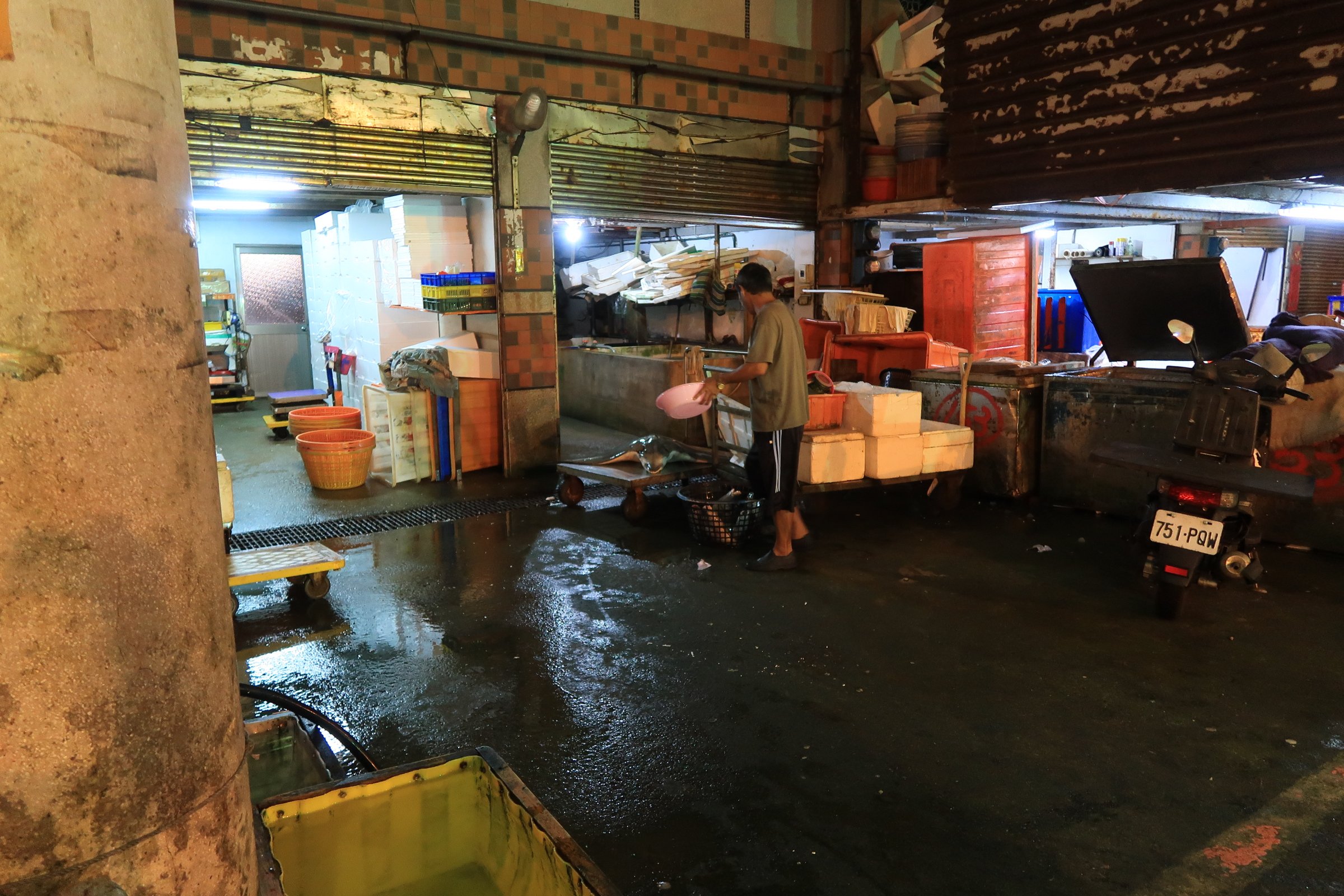 進去逛了15分鐘,不懂得買海鮮也不能買的我(散戶不能喊價),晃回中央,看到中央給一般人逛的魚市場,也正緩緩地甦醒過來……。
