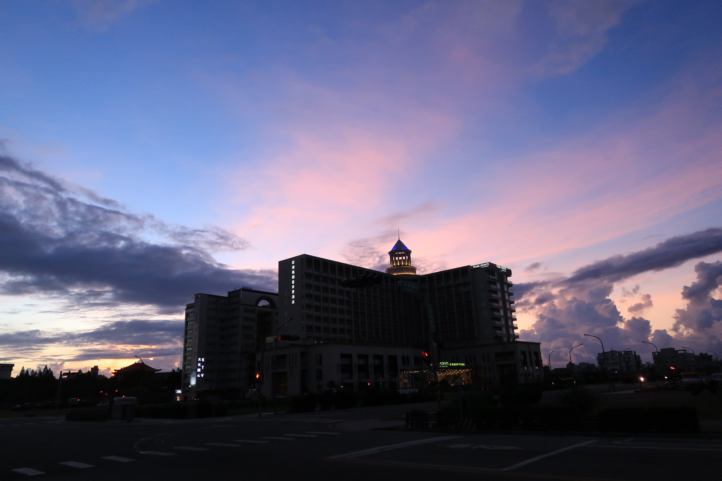 走回飯店,另一邊的天空,逐漸變亮!剛好拍了另一種(看不到太陽的)日出呢!