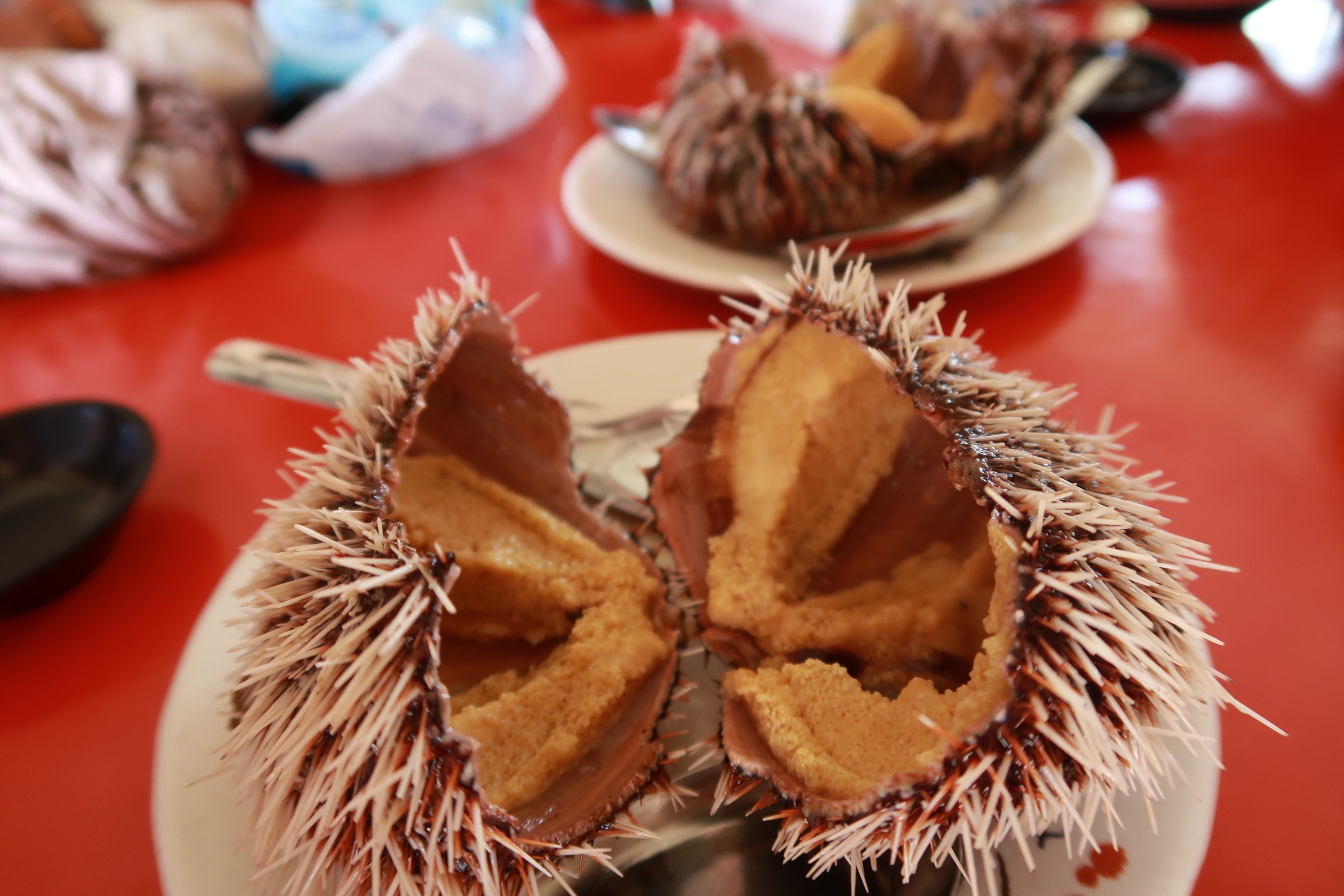 以下附上我看到店家活海膽的興奮影音!此次澎湖旅行之前有做功課,2020年政府允許馬糞海膽開始捕撈只有兩個月,7月1號到8月31號為止!刻意避開端午連假跟花火節人潮,還能遇上馬糞海膽的産季,真的是太棒了!(人◕ω◕)