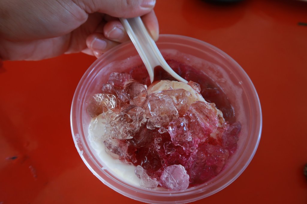 搭配酸甜的仙人掌醬跟香香的糖水,上面再放上冰塊調整甜味跟降溫……(ノ゚0゚)ノ~再來一碗!(事實上,我們六個人最後總共吃掉八碗!😂)