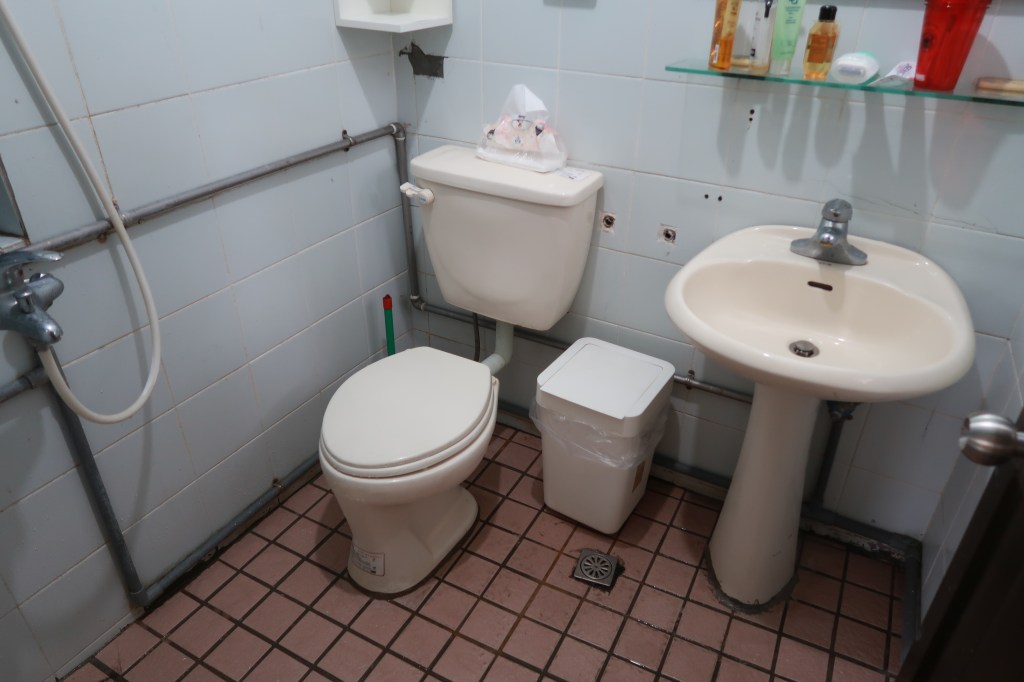 浴廁在洗衣房的旁邊,地板也是那種我覺得踩起來不太爽的版本。