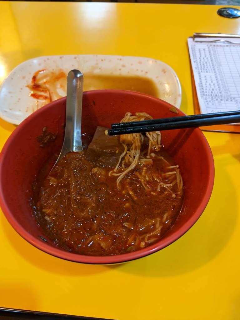 可能是一開始點太多,也有可能是我個人愚蠢沒有自行攪拌開來。總之,辣味在底層的冬粉徹底放飛自我。冬粉剩下一半左右的時候,我都開始配水,嘶嘶叫起來。∑(´・ω・|||)
