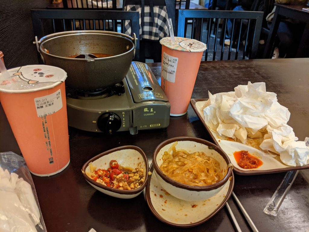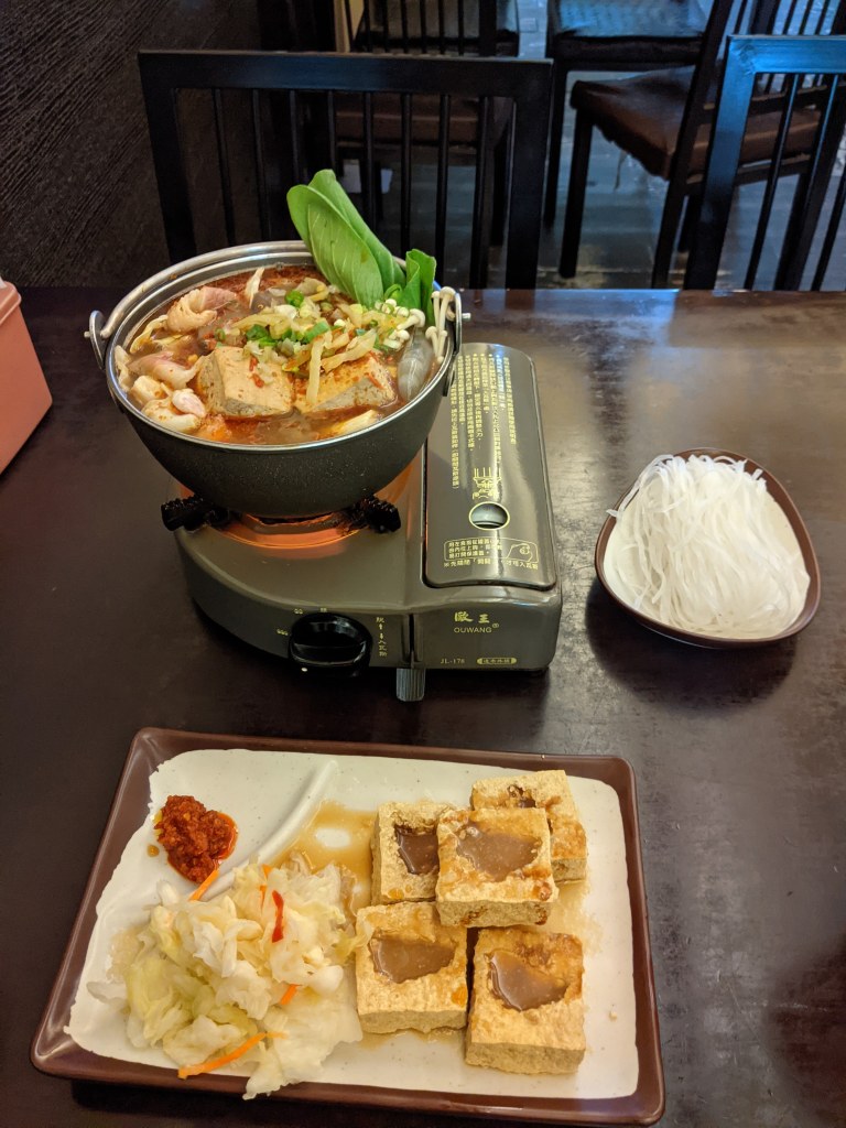 所以每次點起來這樣一桌,其實非常豐富。( 尤其我都點招牌火鍋+一份臭豆腐,看到隔壁桌情侶兩個人只點一個小鍋分食,我都分不出到底我是大食怪還是他們的胃真的很小?)