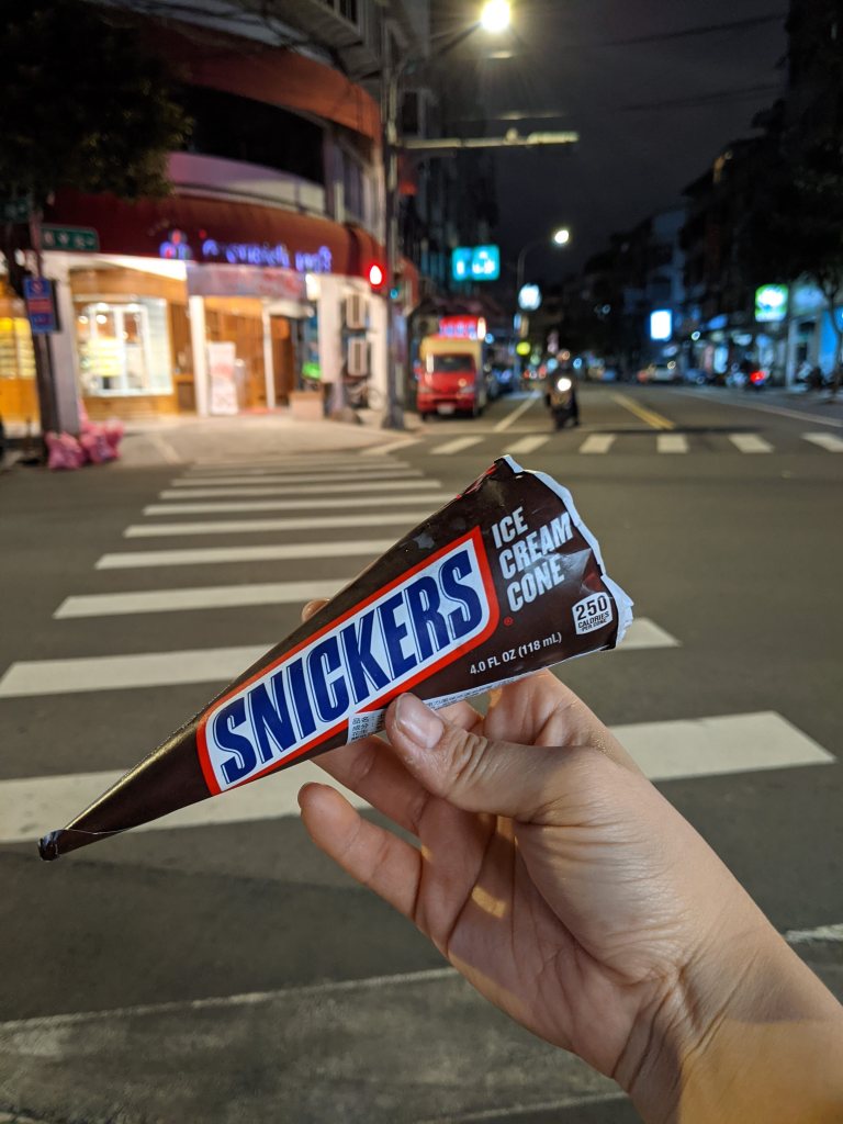 最有趣的是,我平常完全不吃士力架。它對我來講太甜!( 但是之前我也買過M&Ms的甜筒,發現即便是這種外國人在吃的大品牌,冰品系列他們甜度還是會收斂很多!)