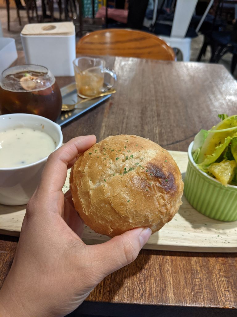 首先是店員特別提醒我要搭配著湯一起吃的麵包!