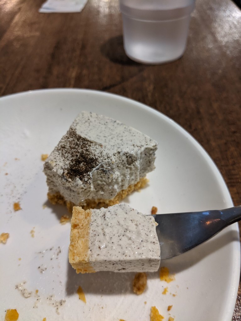 味道跟回憶中一樣美味!但是它退冰過頭,吃到一半變得很膩口,後來變得很噁心。雖然我很討厭別人給我冷凍未退冰完全的生乳酪蛋糕,但是這種退過頭的我也是第一次遇到……