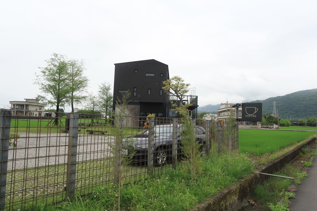在橋邊騎著騎著,遠遠的就能一片農田中看到這棟特別的建築物。(雖然農田中聳立一棟別墅,是一件很正常的事情!但是這棟主題性也算滿強的,不是難以辨認的那種。)