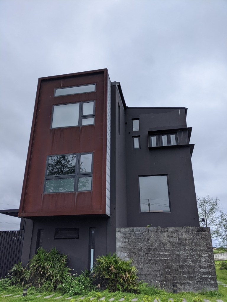 左側的比較高,約莫三層樓。(後來稍微查一下,發現他也有做民宿。)(就算在我嘉義老家,也沒有辦法拍出他民宿內的窗景這麼漂亮的景,害我滿想去住看看的!)