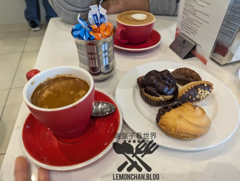 這家分店滿特別的,裡面除了甜點之外還有賣咖啡跟gelato冰淇淋。座位區小巧精緻,很適合跟熟悉的人一起來訪;看得出來是很受當地人老人家歡迎的小店。( 但是店員並沒有在親切跟溫馨,請你不要多心。)
